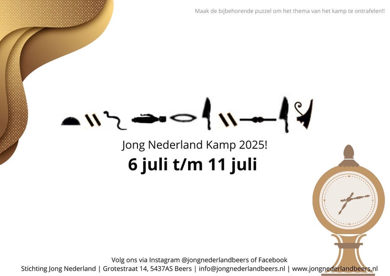 In de zomervakantie staat het kamp van Jong Nederland weer voor de deur met als thema dit jaar een thema wat jullie zelf mogen ontraadselen!🙃